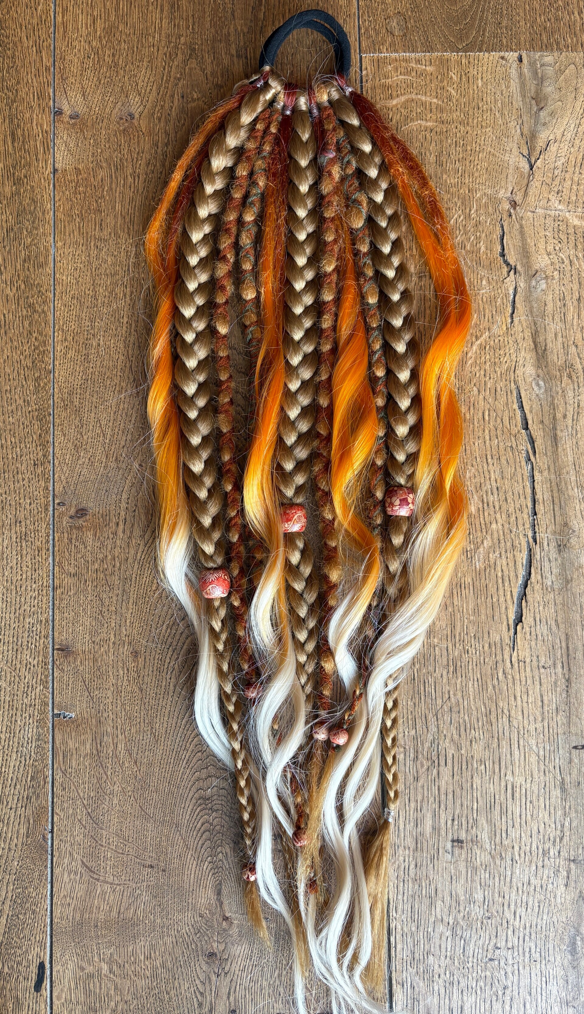 Mooie ponytail , met een mix van dreads, vlechten en beachweave.